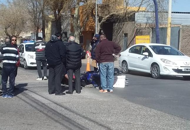 Según informaron las fuentes, un hombre circulaba en moto por Mariano Moreno de Este a Oeste y, al intentar cruzar la Avenida Rawson, fue embestido por un Ford Mondeo.