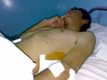 Según contó José, le faltaba una cuadra para llegar al colegio cuando se le apareció su agresor, Carlos (16), del turno mañana. Se insultaron y se agarraron a las piñas, indicó. Las trompadas iban y venían ante la mirada de jovencitos de ambos turnos. Pero en un momento dado, Carlos sacó un cuchillo sin mango y le dio tres puntazos. Uno en el codo izquierdo, otro se frenó en una costilla y el último y más dañino, entró entre los huesos de su costado izquierdo, deteniéndose cerca de un pulmón. La sangre brotaba sin parar. José, herido y como pudo, fue hasta una sala de primeros auxilios cercana pero estaba cerrada, contó. A los pocos metros se desvaneció.