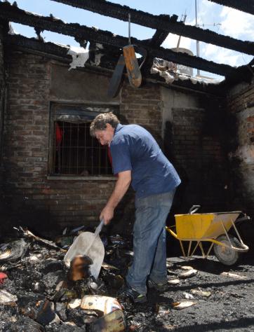 ‘Oro había en ese salón pero Dios sabe por qué hace las cosas, lo importante es que no nos pasó nada a mi marido, a uno de nuestros tres hijos y a mi’, dijo Silvia, en medio del trajín de gente del municipio de Chimbas que ayudó con la limpieza de los escombros. ‘Una lástima por los recuerdos, pero son cosas, lo importante es que estamos bien’, dijo Carson, quien suponía que todo de originó por un resto de fuego de un asado.