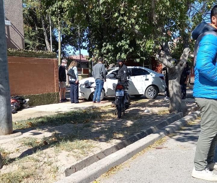 Producto del fuerte impacto, los ocupantes de la moto “volaron” hasta una vereda y el auto, conducido por Yanina González (43), fue a parar hasta el portón de una casa propiedad de Mauricio Báez (52).
