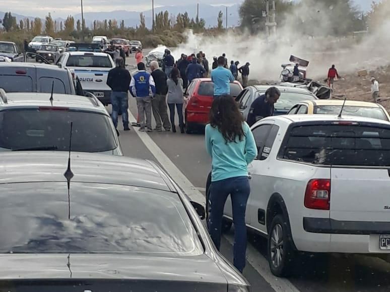 En ese momento, una camioneta que transitaba hacia el Oeste lo chocó y el Fiat Regata quedó partido en dos. Por el hecho, tuvieron que asistir dos dotaciones de Bomberos y varios efectivos policiales con el fin de apagar el incendio y ordenar el tránsito en la ruta.