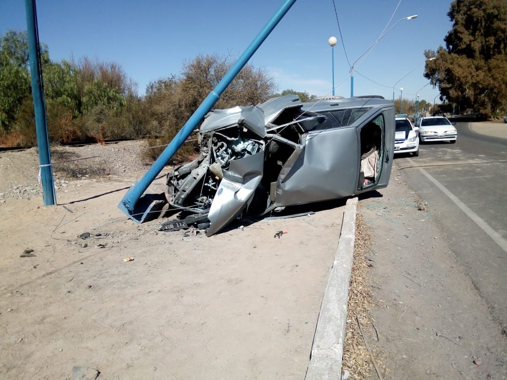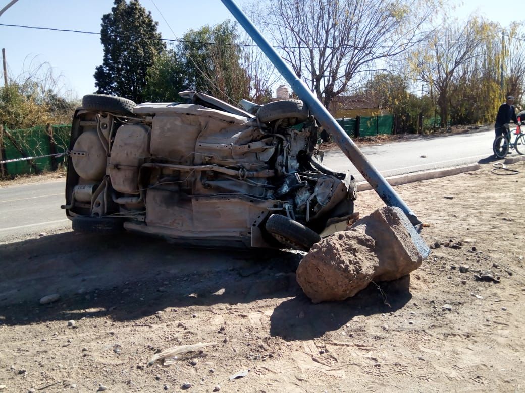 Según informaron las fuentes, un Ford Escort circulaba por Lemos entre Calles 7 y 8 en Pocito, cuando por causas que aún se desconocen, el conductor perdió el control y mordió la banquina. El vehículo se dio vuelta y fue a parar contra una farola del alumbrado público, que por cierto terminó partida.