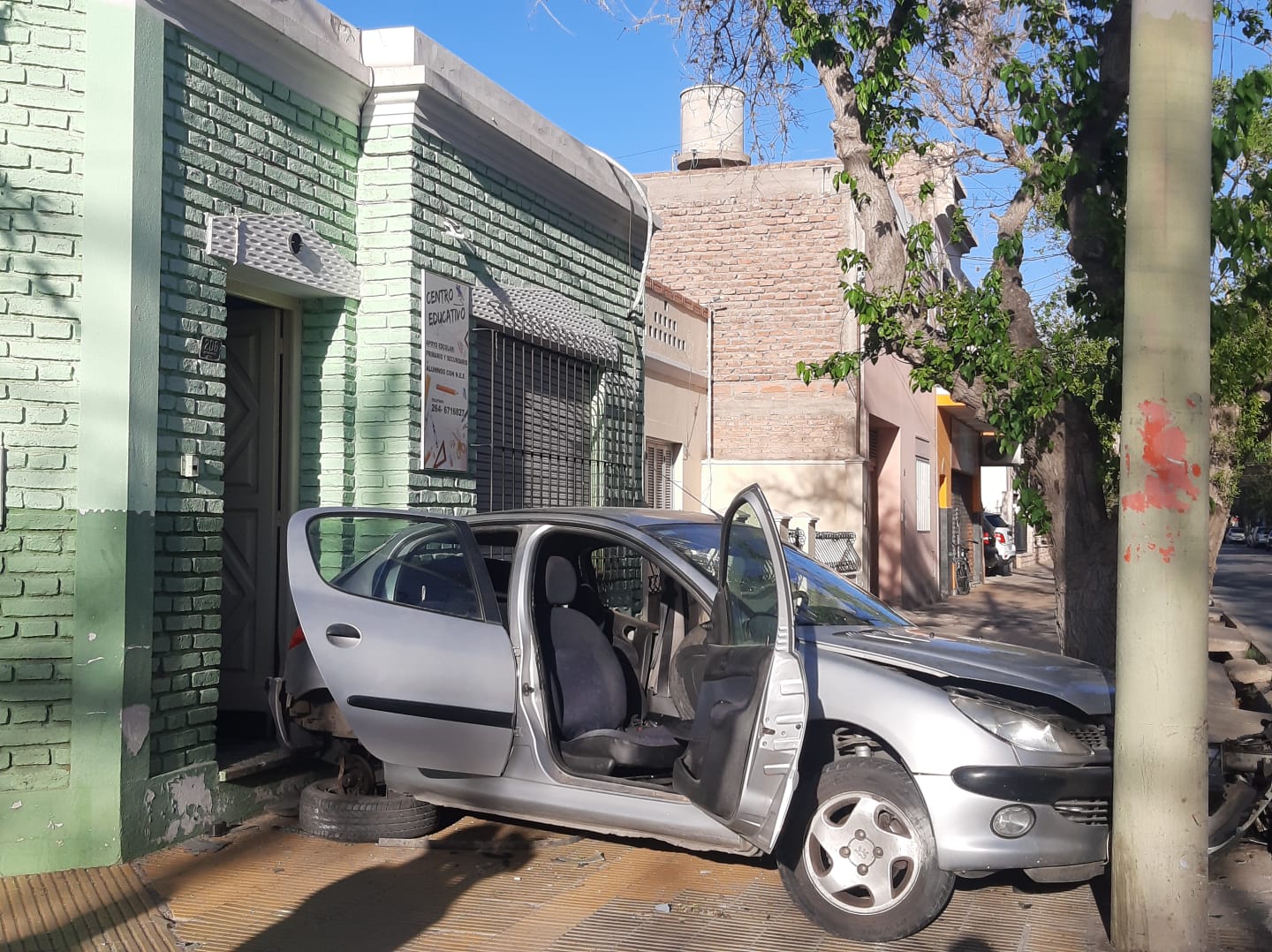 Todo sucedió en inmediaciones de 9 de Julio y Sarmiento, en Capital, cuando, por motivos que aún no fueron determinados, los dos autos Peugeot, uno 207 y otro 307, terminaron chocando y uno de ellos terminó en la vereda.