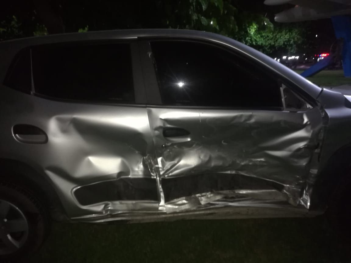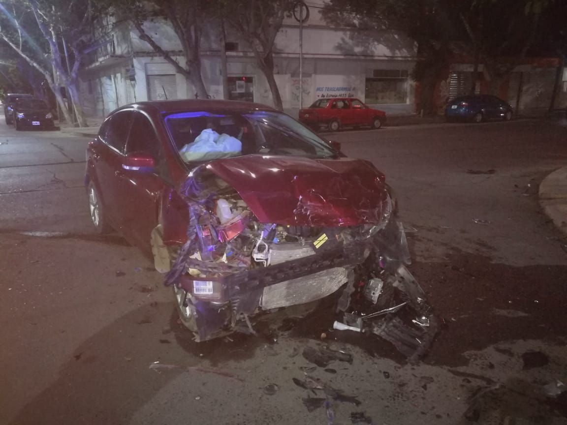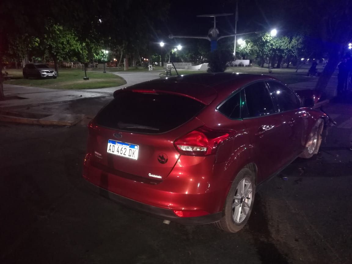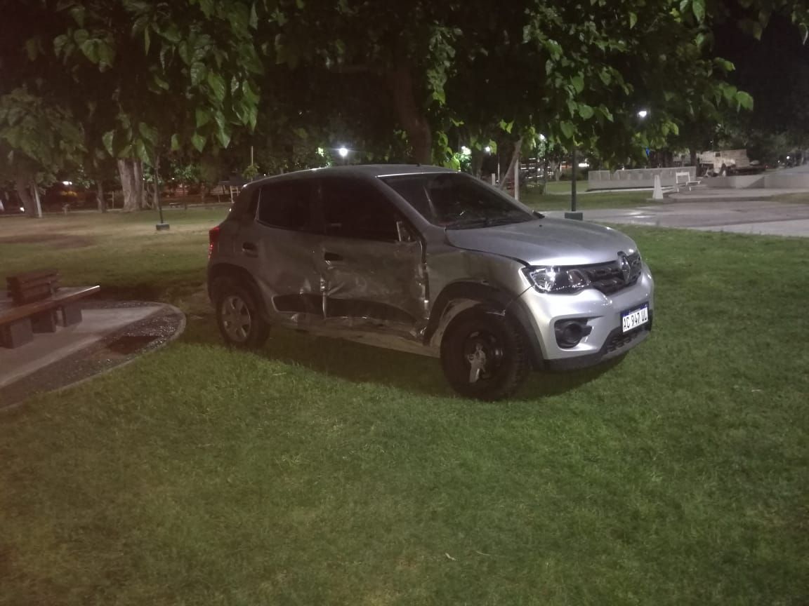Según informaron las fuentes, el siniestro vial se produjo en el cruce de España y San Luis. Allí, un Ford Focus y un Renault Kwid impactaron violentamente y els egundo vehículo dio varios tumbos hasta terminar subido a la plaza.