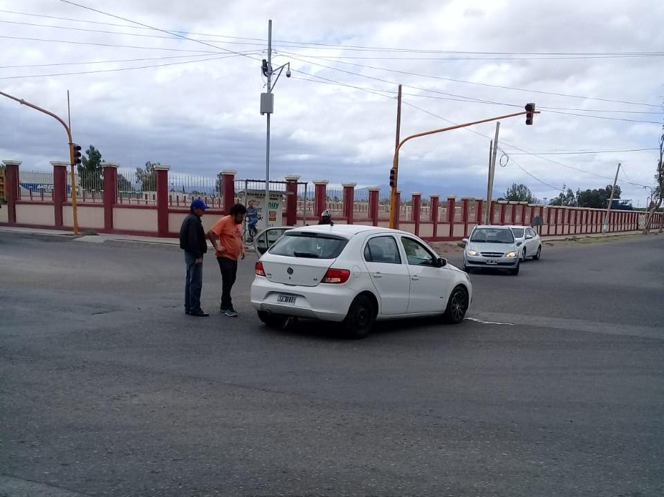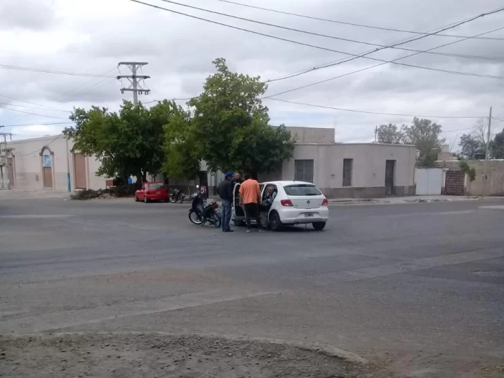 Durante la siesta sanjuanina, una moto y un auto protagonizaron un choque en la esquina de Calle y Lemos, en Rawson.