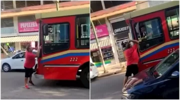 Al parecer, el colectivero ni siquiera frenó para arreglar el tema, lo que exacerbó al automovilista. Este último lo persiguió y se le paró enfrente impidiendo que avance.