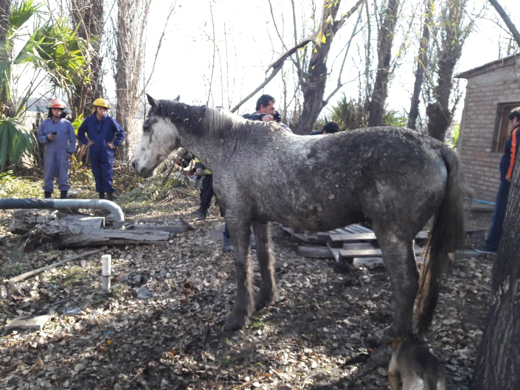 En la tarde de este sábado, un caballo cayó a un pozo de agua y quedó atrapado. De inmediato, Bomberos Voluntarios de Pocito y personal del cuartel de Rawson se acercaron al lugar y, tras un arduo trabajo, lograron rescatarlo.