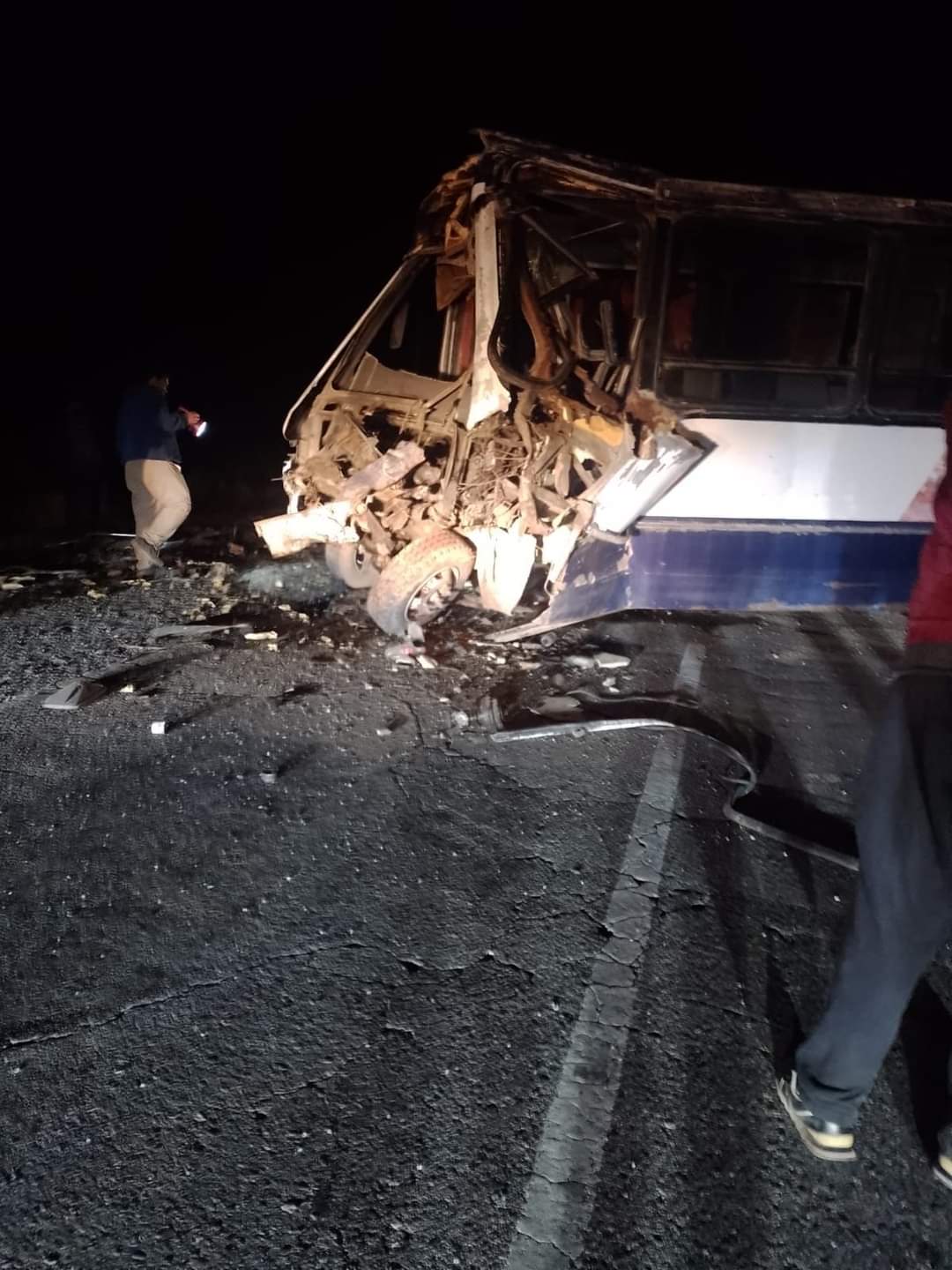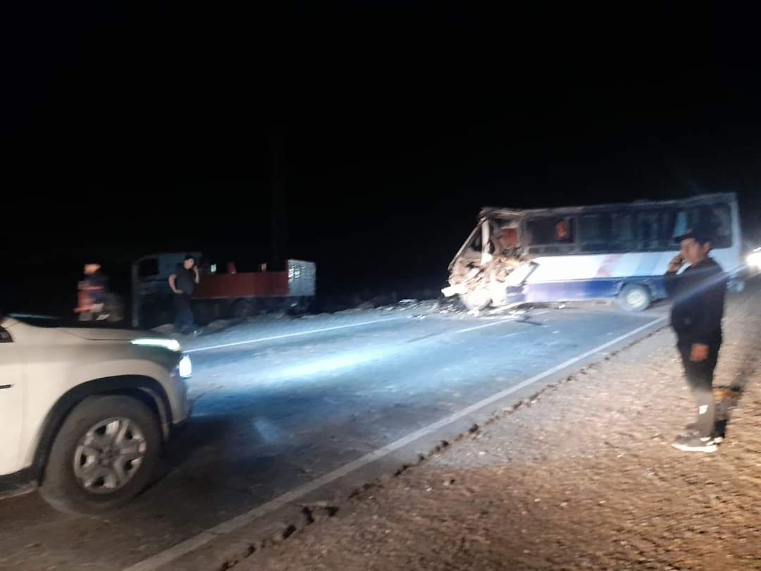 El siniestro vial ocurrió anoche pasadas las 21:30. Se trata de un choque frontal entre un camión y un micro sobre la Ruta 153 camino al distrito de Los Berros. Un caballo se atravesó en el camino del colectivo que lo obligó a hacer una maniobra repentina y cambiarse de carril, donde venía el otro vehículo de gran porte.
