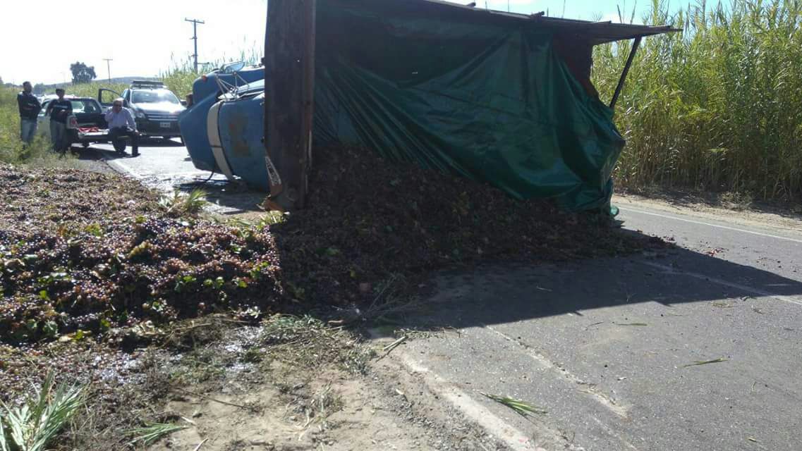 El vehículo era utilizado para trasportar una importante carga de uvas, que quedo desparramada por toda la calzada.