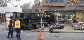 Todo ocurrió a las 7.45 en Libertador y lateral Oeste de Circunvalación. Al Sur por el lateral, Gustavo Quiroga (31) y su compañero Marcelo Soria (32) viajaban a bordo de un camión Mercedes Benz y cuando giró al Oeste por la avenida, la dirección no respondió, informó la Policía. El rodado siguió de largo, volcó y siguió hasta ingresar a la vereda Sur, donde se encuentra el autoservicio ‘Myriam’. Por fortuna, no circulaban otros vehículos o personas en ese momento por esa zona, señalaron. ‘Estábamos acomodando todo para abrir con otros 4 compañeros cuando volcó el camión. Por suerte fueron daños materiales’, dijo Javier Jaime, el dueño de una de las motos.