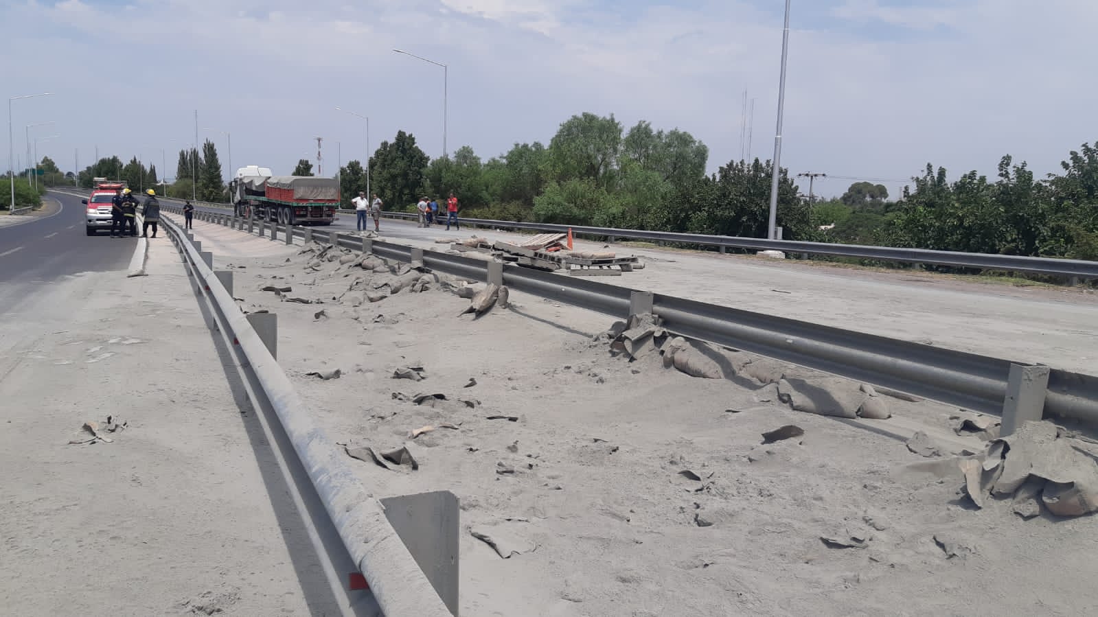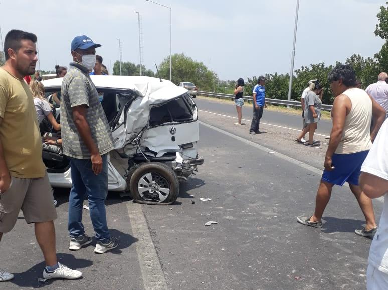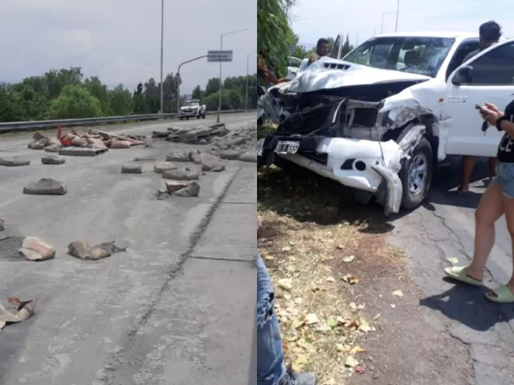 Según los testigos del hecho, un rodado de gran porte llevaba un importante cargamento con bolsas de cemento, las que se desprendieron mientras transitaba por la A14 en ascenso al puente de avenida España. Los vehículos que venían detrás, al ver la situación frenaron repentinamente y por la velocidad que algunos traían, impactaron en cadena.