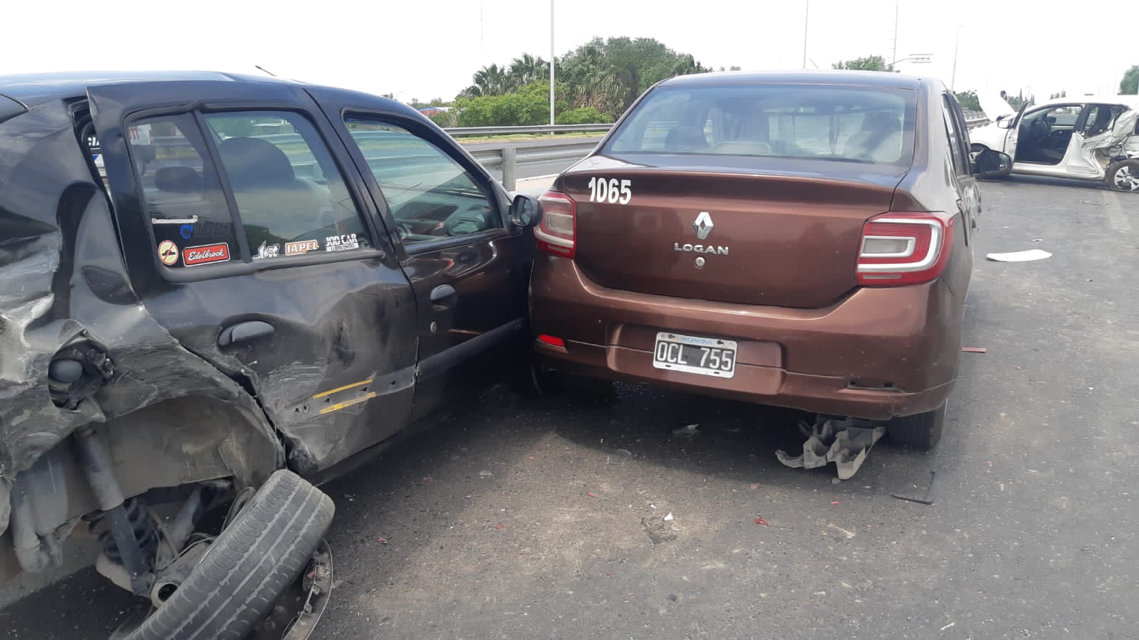 Los autos que participaron del impacto, que fueron cinco (Toyota Hilux, Renault Clio, Renault Logan, Chevrolet Cora y Volkswagen Up), quedaron visiblementes dañanos, ya que por la brusca maniobra de esquivar el desprendimiento de la carga o frenar inmediatamente, la mayoría no pudo evitar el impacto entre ellos.