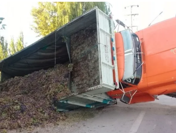 Pasadas las 14 de este lunes se npriducto un accidente con un vehículo que transportaba uva. El hecho sucedió en calles San Juan y Laprida, departamento San Martín.