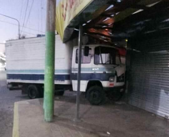 Los cauceteros se sorprendieron en la mañana de hoy con un camión incrustado en el frente de un local comercial.