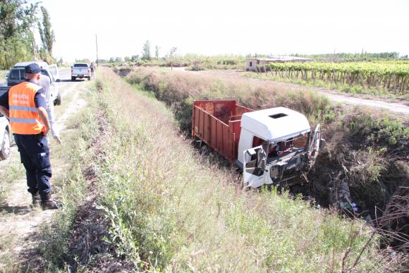 Según fuentes policiales, el hecho se produjo en Calle 8 y La Plata. Un camión transitaba de Sur a Norte cuando pasó por encima de un pozo, volcó y cayó a un zanjón. En el accidente no hubo otro vehículo involucrado.