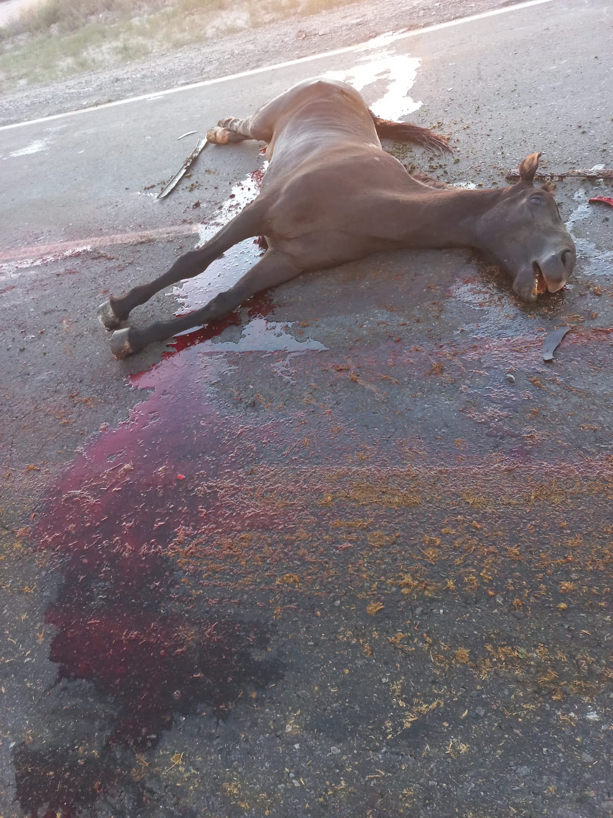 Un camionero protagonizó un violento accidente sobre las 7 de este lunes cuando chocó a un caballo en plena Ruta 20 y luego impactó con un auto donde viajaba una familia santacruceña.