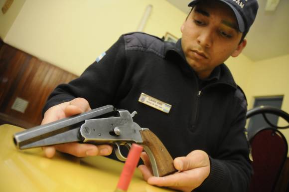Policías de la Motorizada I persiguieron y apresaron alrededor de las 17.30 de ayer a un chico de 14 años en Tucumán y Circunvalación, en Concepción, Capital, y le secuestraron un pistolón calibre 36 (tenía un cartucho, foto) con el que les había disparado cuando quisieron identificarlo, informó la Policía. Estaba preso en la Seccional 2da. pero es inimputable.
