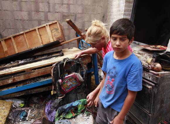 El lado poco feliz es que el incendio de ayer a las 2.30 en la casa 49 de la manzana J del B°Area II de Caucete, golpeó por segunda vez al pequeño Andrés Avila y su familia. Y es que venían de sufrir la inundación por el último temporal. En la habitación donde se originó el fuego, se quemó toda la ropa de los cuatro integrantes de su familia, un televisor y otras cosas que habían rescatado del agua en su rancho en B° Los Médanos. De hecho, el chico estaba en casa de sus abuelos en B° Area II porque sus papás (junto a su hermanita) se fueron a cuidar aquella precaria vivienda.