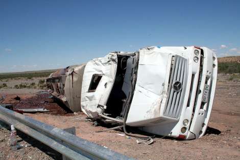 Un volantazo de emergencia por esquivar a varios caballos y vacas que se cruzaron a las 11:30 de ayer en plena ruta 141, provocó que un camionero terminara a los tumbos con camión y todo, unos 15 kilómetros al Este de Vallecito, en Caucete. El chofer se salvó de no salir despedido de la cabina y aplastado por el pesado vehículo, sólo porque llevaba puesto su cinturón de seguridad: cuando un compañero lo rescató, estaba colgado dentro de la cabina, con golpes y heridas menores, pero fuera de peligro.