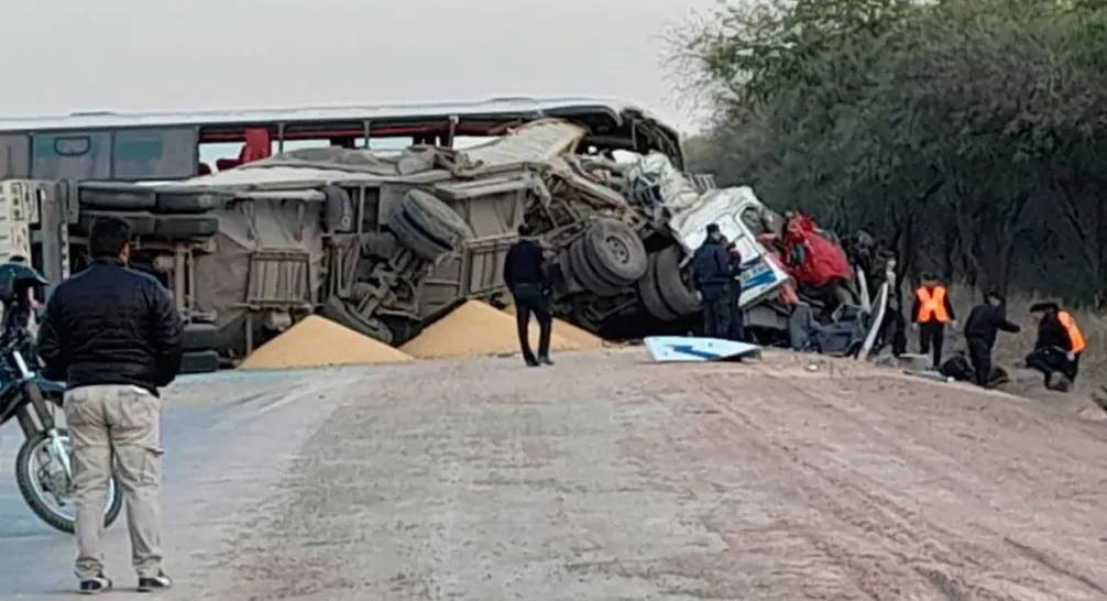 Una feroz colisión ocurrida a unos 15 kilómetros de la ciudad de Monte Quemado, en Santiago del Estero, dejó como saldo la muerte de seis personas, mientras que once resultaron heridas, seis de ellas de gravedad. El siniestro sucedió como consecuencia del choque entre un micro de larga distancia y un camión en la ruta 16, según informaron fuentes policiales y judiciales.