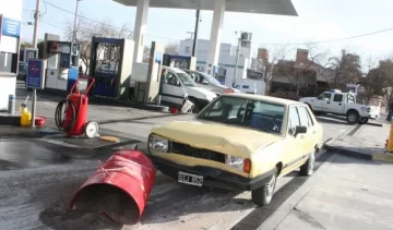 Un gran susto se llevaron ayer a las 17 empleados y clientes de una estación de servicios de Matías Zavalla y lateral de Circunvalación, Capital: en ese cruce, un VW Gacel chocó con un motociclista (sufrió heridas leves) y siguió hasta estrellarse contra un tacho que estaba cerca de los surtidores de combustible, dijo la Policía.