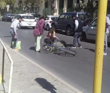 Fue tal la cercanía entre ambos, que el espejo del auto tocó al hombre (de unos 55 años) y éste se cayó de su bicicleta y terminó en el suelo. La conductora del Agile, asustada, se bajó y trató de asistir al damnificado.