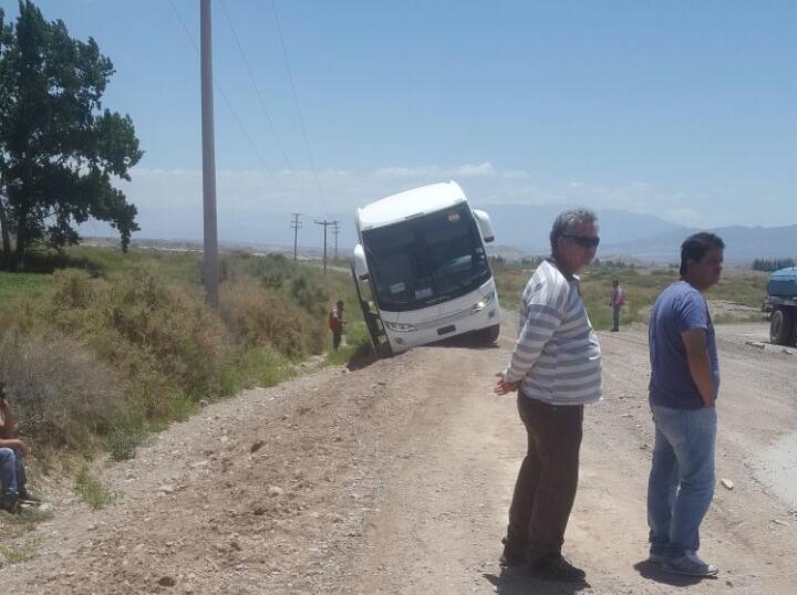 Cerca del mediodía, un colectivo de la empresa Semisa que transportaba mineros a la ciudad de San Juan desde Veladero tuvo un inconveniente en el camino y casi se da vuelta.