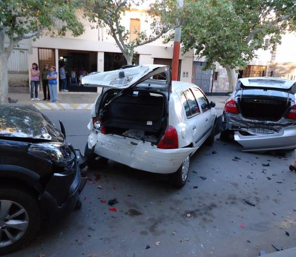Quien protagonizó tamaño choque ayer a las 18 fue el presbítero Raúl De los Ríos (48), quien está al frente de la iglesia de Trinidad, informó la policía. La versión policial indica que De los Ríos conducía su Renault Sandero al Sur por calle Tucumán y al pasar Brasil, perdió abruptamente el control del rodado y se fue hacia la derecha. En ese sector de la calle estaban estacionados el Renault Clio de Marcela Zegaib y delante de su auto estaba el Chevrolet Aveo de otro pariente. ‘Estábamos tomando mate y escuchamos una explosión. Cuando salimos vimos a este hombre haciendo marcha atrás y tratando de huir. Nos paramos al costado de su auto y decía: me tengo que ir a dar la misa, déjenme ir’, aseguró Zegaib.