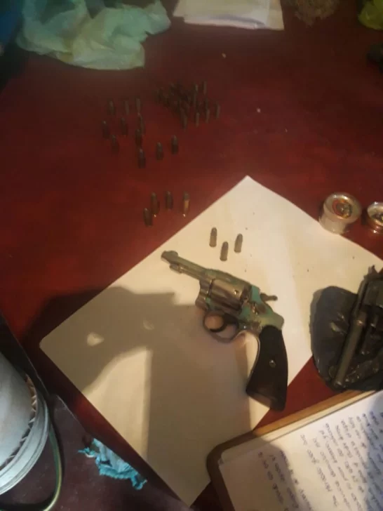 Además, le incautaron dos revólveres calibre 32 con 7 balas entre los dos. También le secuestraron una bolsa con cinco balas calibre 32 largo, cinco calibre 38 corto, dos calibre 38 largo, tres vainas servidas calibre 38 y veintidós vainas servidas calibre 32.