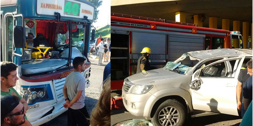 El hecho se produjo minutos después de las 17 en la intersección Oeste de lateral de Circunvalación y Avenida Sarmiento, en Santa Lucía, donde por cuestiones que se investigan, un colectivo de la línea 40 de la empresa La Positiva chocó violentamente contra una camioneta Toyota.