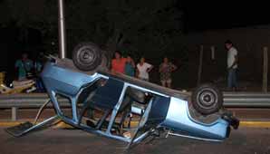 San Juan, 10 de marzo.- Fue un accidente con suerte, teniendo en cuenta cómo quedó el vehículo más afectado. Esta noche, en conector Sur y Circunvalación, de Capital, dos automóviles se rozaron provocando el vuelco de uno de ellos.
