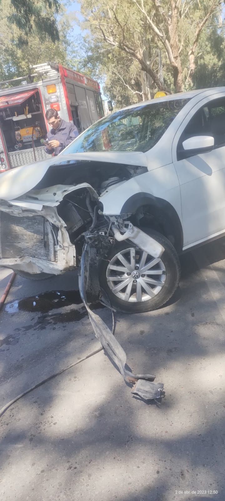 El hecho se produjo pasado el mediodía y Bomberos tuvo que intervenir para apagar el fuego en uno de los vehículos involucrados.