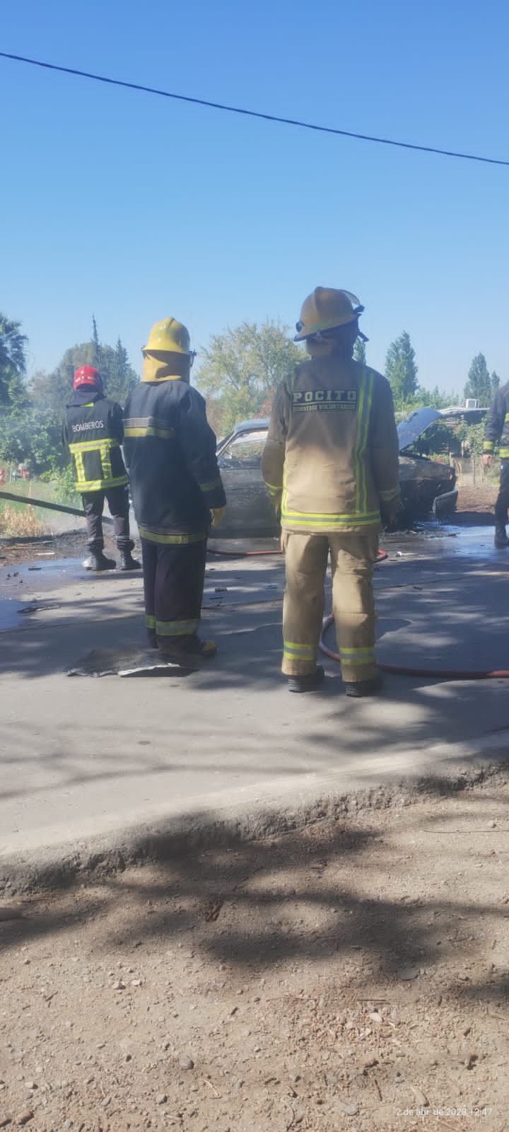 Bomberos Voluntarios de Pocito tuvo que intervenir para apagar las llamas que se generaron en el Renault 12.