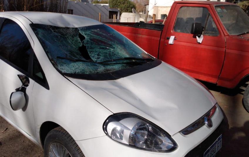 Por la violencia del impacto, el automóvil sufrió la rotura completa del parabrisas y daños en la parte derecha.
