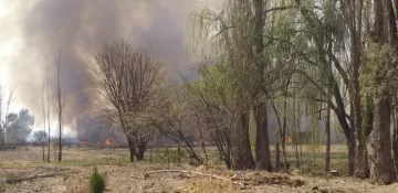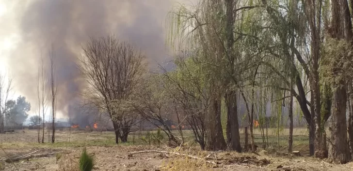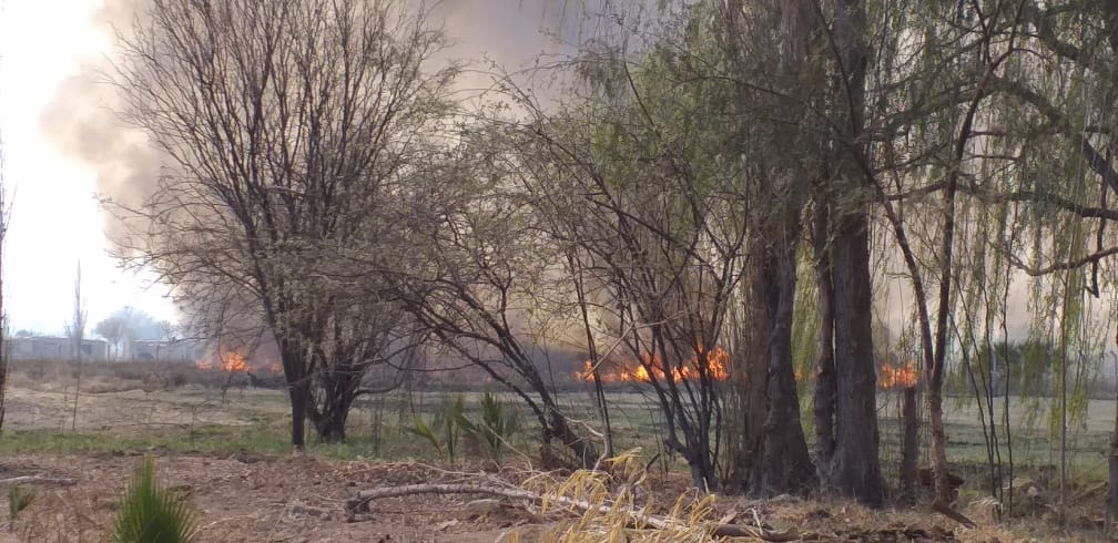 Alrededor de las 14, un incendio de grandes dimensiones generó pánico en los vecinos de Albardón porque había viviendas cerca de las llamas que se generaron en unos pastizales y alcanzaron cañaverales.