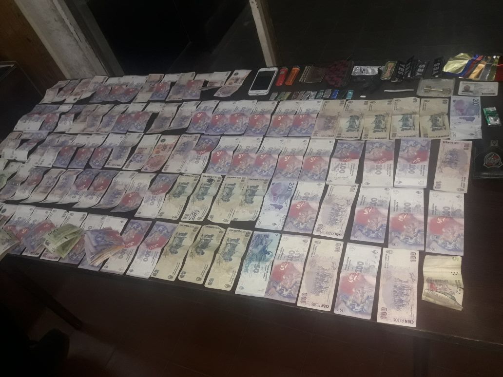 El detenido, de apellido Montiveros, llevaba 16 mil pesos en efectivo, papel glase y 9 gramos de cocaína.