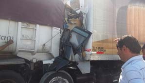 San Juan, 15 de febrero.- Esta tarde, un accidente en 25 de Mayo entre dos camiones tuvo un desenlace fatal. Es que uno de los conductores de los vehículos perdió la vida luego de agonizar algunos minutos en el lugar del siniestro.
