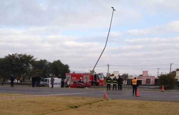 Un impresionante accidente de tránsito se produjo esta mañana sobre Ruta 40, a metros de Progreso, en Rawson. Por motivos que se desconocen, un hombre perdió el control del vehículo que conducía y lo estrelló violentamente contra un poste de luz.