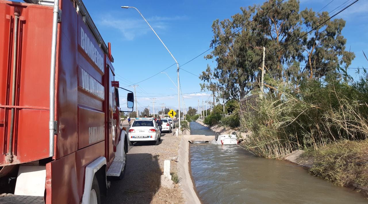 Personal de Bomberos de Santa Lucía trabajó en el lugar. Según las fuentes, la principal hipótesis es que el automovilista perdió el control por una mala maniobra.