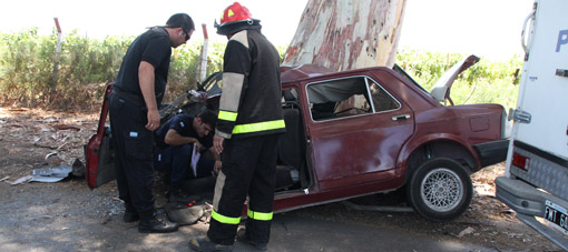 Por motivos que aún se desconocen, el conductor perdió el control del Fiat 128 que manejaba y se estrelló de lleno contra un eucalipto.
