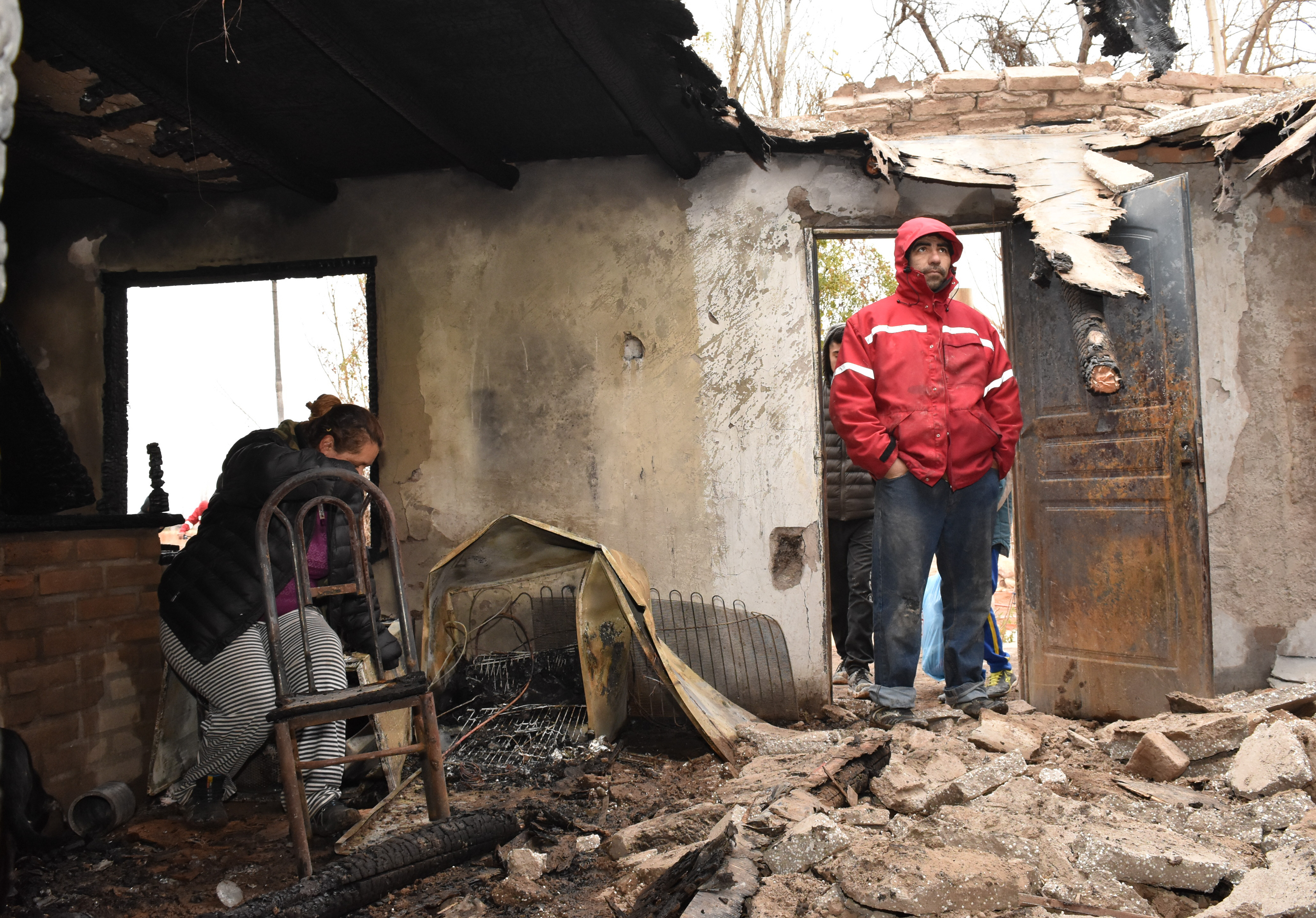 Con lo puesto. La humilde familia rawsina quedó en la calle después del incendio en su vivienda. Estaban en la casa cuando empezaron las llamas, pero poco pudieron hacer.