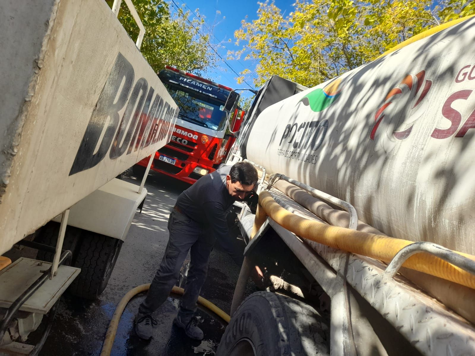 Bomberos Voluntarios de Pocito contaron con el apoyo durante el operativo de un camión hidrante de un vecino llamado Manuel Torres.