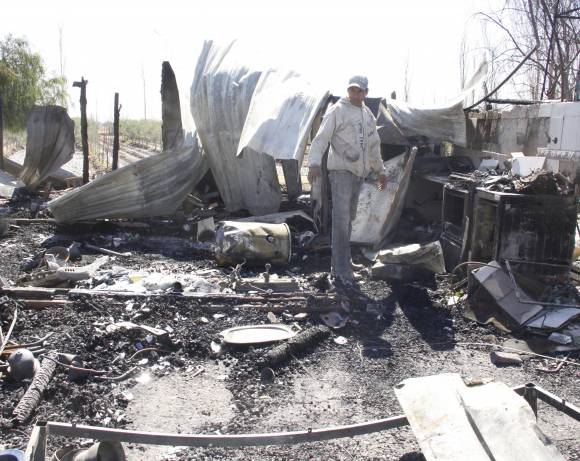 “Doy gracias a Dios que nos pudimos despertar justo a tiempo, porque sino no sé qué nos hubiera pasado”. Rodolfo García, un comerciante de 48 años, daba gracias ayer de haber salido con vida con su mujer y su hijo de 18 años de un incendio que destruyó el domingo en la madrugada su casa de campo ubicada en una finca de Carpintería, Pocito. Según la Policía, el siniestro se habría producido por un cortocircuito en un termotanque eléctrico y enseguida las llamas se propagaron por la construcción hecha de troncos, aunque la familia pudo escapar. García, sus parientes y el casero de la propiedad con unos amigos, combatieron el fuego, pero no pudieron hacer mucho: 2 televisores (uno de ellos un LCD de 32’), 2 equipos de aire acondicionado, una heladera, un microondas, una cocina, un freezer, un equipo de música, 4 camas, 2 ventiladores de pie, 8 sillones, 10 mesas, 40 sillas, ropa y otros objetos, quedaron reducidos a escombros. Hubo pérdidas por $200.000, según el comerciante.