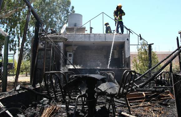 Un incendio terminó ayer con todo lo que había en un quincho usado como bufet para los concurrentes a unas canchas de paddle en Capital. Tres freezer de pie, un ventilador grande, una computadora, un televisor de 29 pulgadas, una radio, ropa de trabajo, la bebida, mesas, sillas y toda la estructura, sucumbieron ante la voracidad del fuego, finalmente controlado por personal de Bomberos, dijeron fuentes policiales.