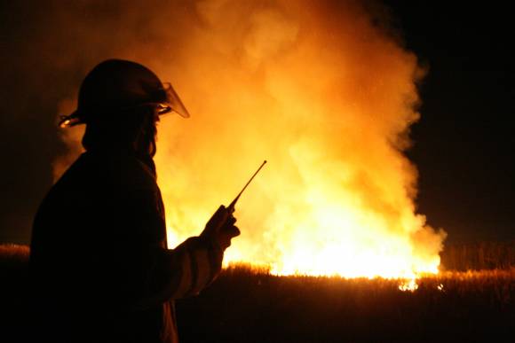 Grandes columnas de fuego y sobre todo de humo, un humo que se expandió tanto que pudo verse desde varios kilómetros. Ocurrió ayer cerca de las 18 en inmediaciones de Cervantes y calle 7, en Médano de Oro, Rawson. El incendio (quizá de origen intencional) consumió decenas de metros de totoras y otras malezas pero no provocó víctimas ni daños materiales, dijeron desde Bomberos. El siniestro era controlado anoche por una dotación de bomberos de Rawson, quienes seguían con atención el avance de las llamas por terrenos anegados, por si alguna se desplazaba o amenazaba con llegar a lugares habitados o con animales, informaron en la policía.