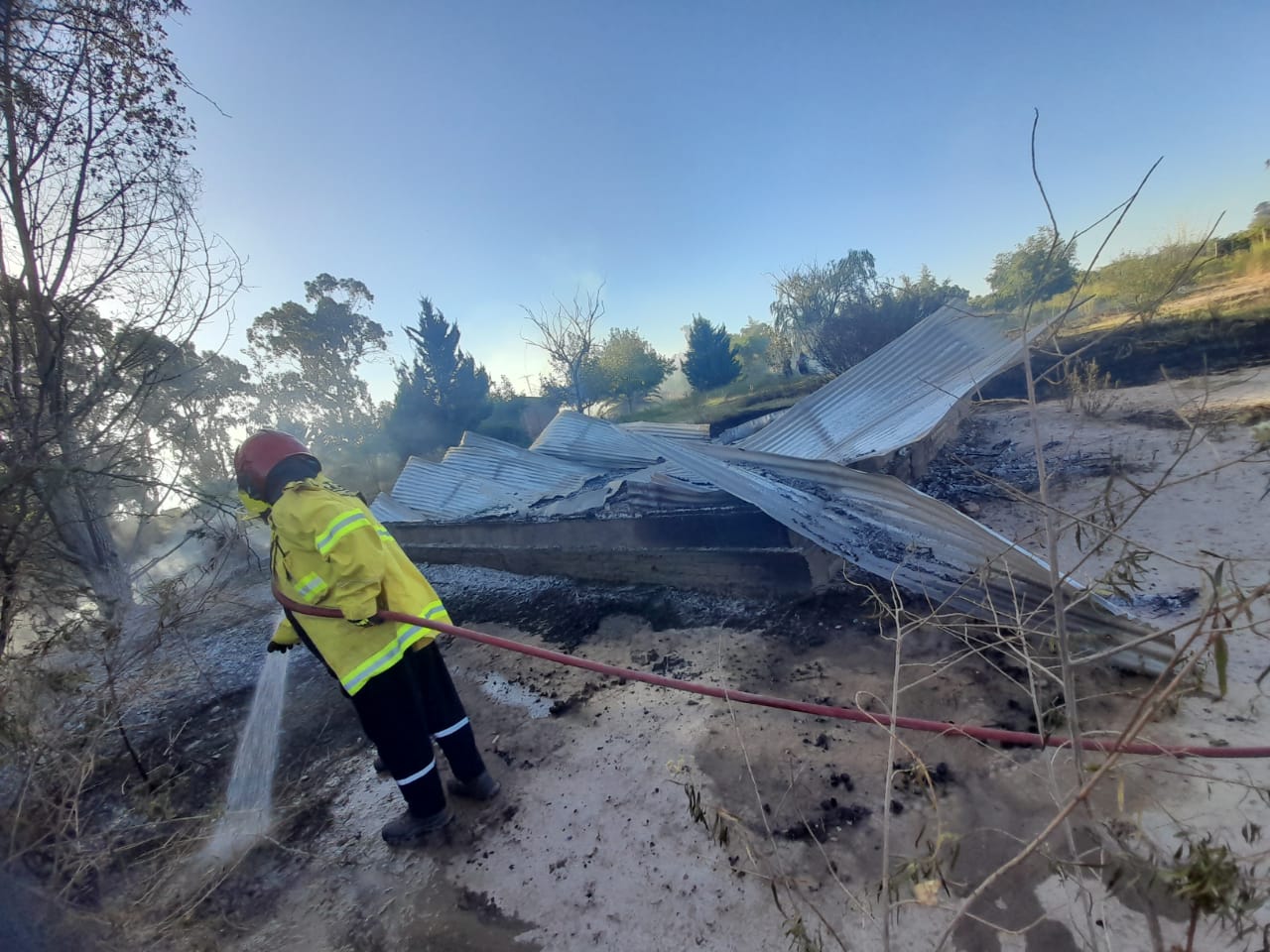 El fuego generó graves daños estructurales y la casa prefabricada quedó en el suelo en su totalidad.