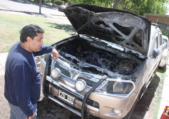 ’Un bombero me dijo que lo que podría haber causado el incendio era el sistema sonoro de la alarma, pero me parece imposible porque hace bastante tiempo que lo desactivé porque me cortaba la corriente de la batería. Además, perdí el llavero, así que ni la usaba. Por eso me quedan dudas de que haya sido un accidente’. Eso dijo el comerciante Oscar Domínguez luego de que, a las 2.30 de ayer, un incendio destruyera el motor y parte del tablero de su camioneta Toyota Hilux en la puerta de su casa del Bº Los Tamarindos, Chimbas.