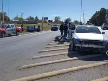 La maniobra finalizó con el vehículo atravesado sobre la banquina tras arrancar un cartel de paso peatonal. Mientras que el Mercedes quedó cruzado en medio de la ruta.