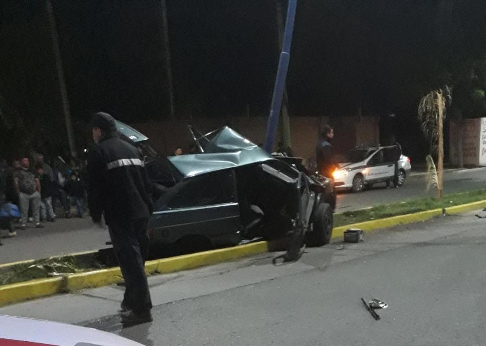 El choque fue tan fuerte que el Volkswagen terminó "abrazado" a una farola.