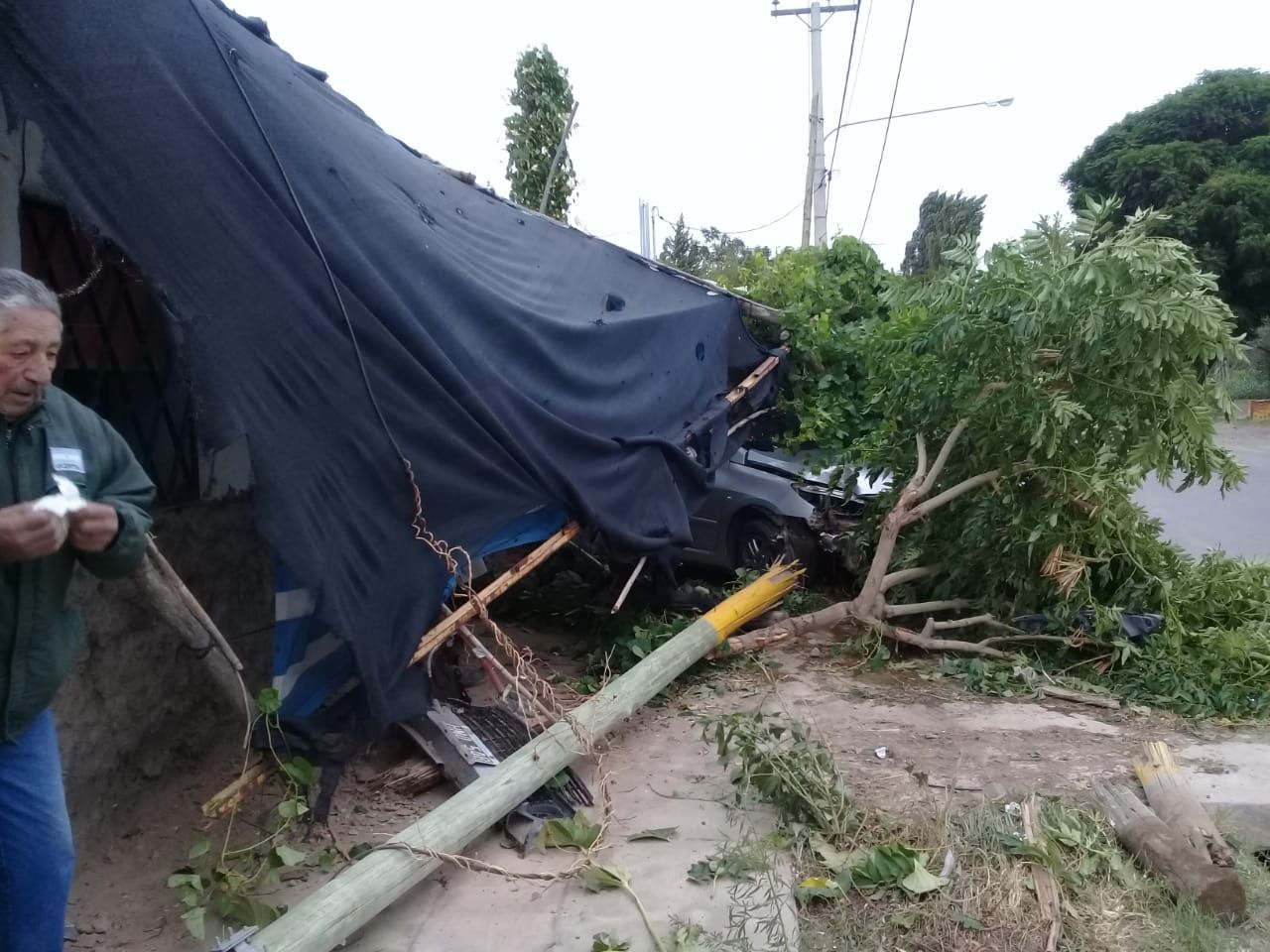 El siniestro fue a las 6:35 de hoy, en calle Sarmiento 3259, poco antes de llegar a la popular Esquina del Sauce. Allí, el conductor de un Peugeot 307 perdió el control del vehículo, derribó un poste de luz, cruzó la vereda, arrancó una pérgola de una vivienda y acabó contra una pared de adobe.
